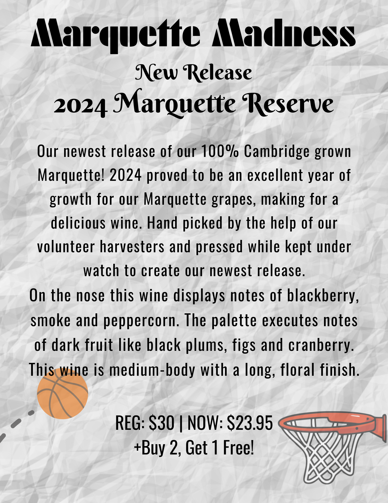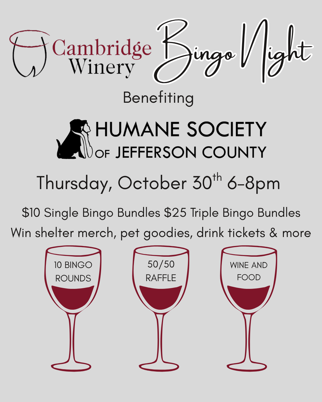 Please note: due to the crowd size and volume level during events, we reserve the right to not serve wine tastings during events. You are encouraged to enjoy full glasses or bottles of wine along with our cheese board and other shareables while you enjoy our events. If you are visiting our winery for the first time and would like to sample our wines, we suggest arriving before the event. Beer, soda, and spirits are also available for purchase. Wisconsin state laws require any person under 21 years of age to be accompanied by a parent or guardian while visiting the winery.
